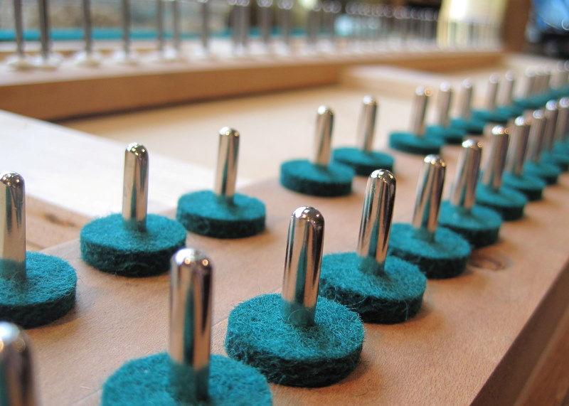Paper and card punchings as thin as .002″ are used under the felts for final adjustments necessary for level keys and even key dip.